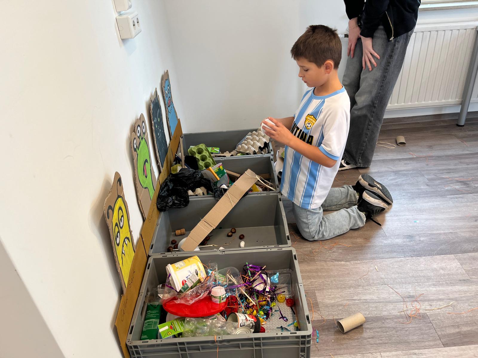 Los ging’s mit einer spielerischen Müllsortier-Challenge, bei der die Kinder herausfinden konnten, was in welchen Behälter gehört. So starteten wir perfekt ins Thema Upcycling:
