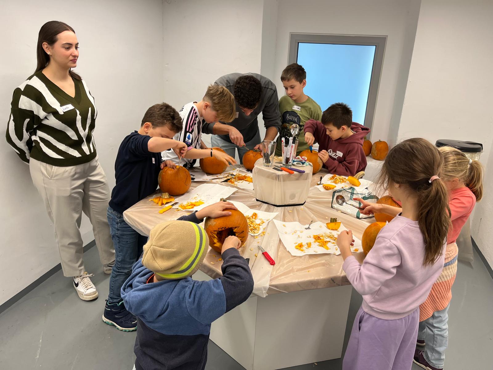 Und so haben wir an zwei Tagen aus Joghurtbechern, PET-Flaschen und anderen „Müll-Schätzen“ gruselige Müllmonster, leuchtende Laternen und originelle Halloween-Deko fürs Kinderzimmer gestaltet. Als Highlight wurden dann noch Kürbisse in der neu gestalteten TUTORAMA Bastelwerkstatt geschnitzt.